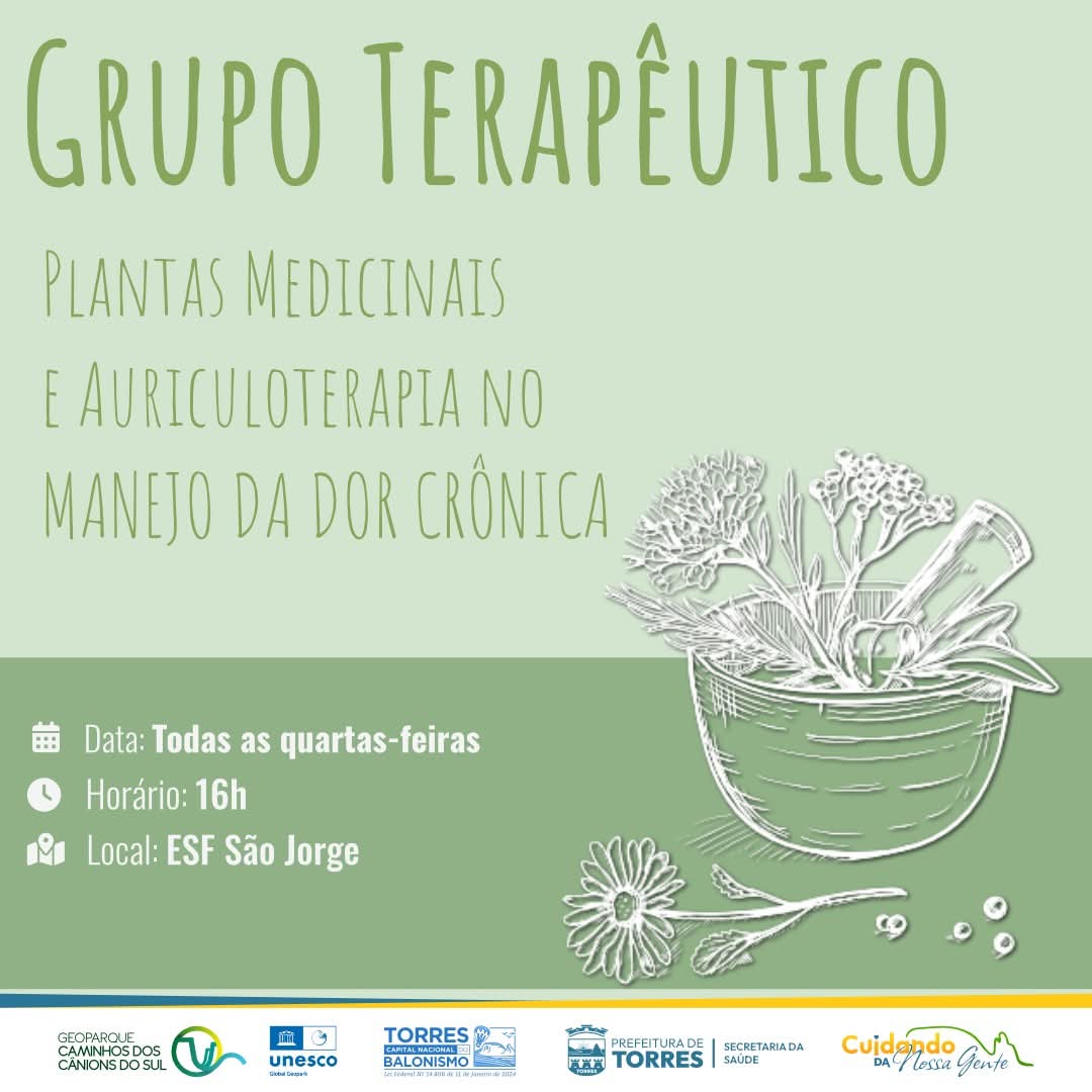 A partir desta quarta-feira, os usuários do ESF (Estratégia Saúde da Família) São Jorge, em Torres, contam com um novo recurso para o cuidado da dor crônica: o grupo terapêutico com plantas medicinais e auriculoterapia. As atividades acontecerão semanalmente, sempre às quartas-feiras, às 16h, com o objetivo de auxiliar no alívio e manejo das dores persistentes.