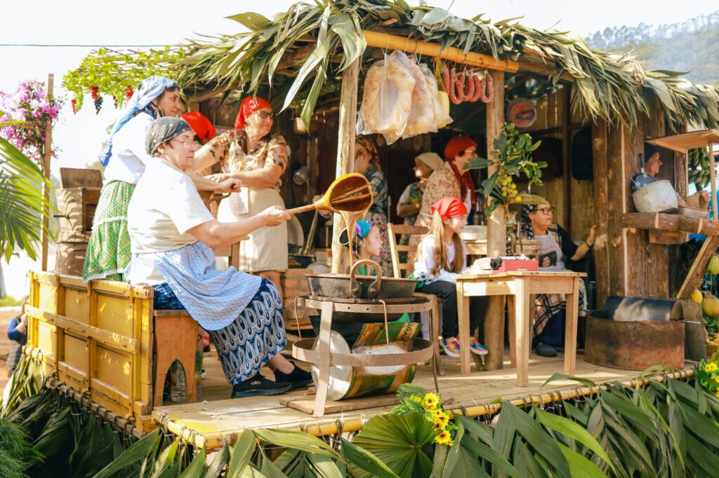 Fotos: Arquivo Prefeitura Municipal de Morro Grande III Agrofest em julho de 2022 (Erik Fenali/ Juliani Dondossola) / Escolha da rainha e princesas da IV Agrofest em março de 2025.