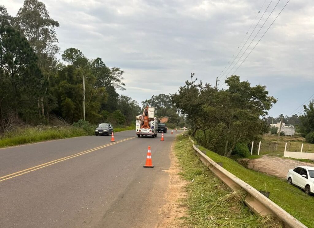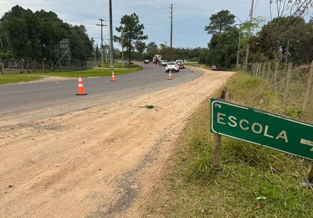 A Prefeitura de Torres, por meio da Coordenadoria de Trânsito da Secretaria de Obras e Serviços Públicos, realizou nesta quinta-feira, 17 de julho, uma intervenção na Estrada do Mar, próximo à Escola Municipal Santa Rita, com o objetivo de aumentar a segurança de famílias, alunos, professores e motoristas que trafegam pelo local. A ação incluiu roçada e poda nas margens da via, além da pintura e sinalização vertical e horizontal para alertar sobre a redução de velocidade, já que a área é um perímetro escolar.