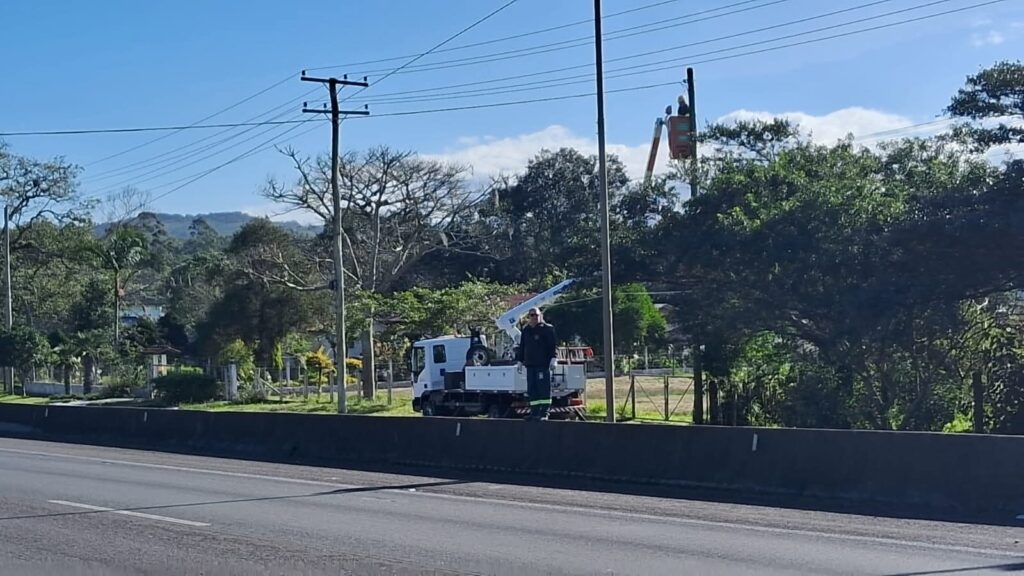 Um cabo de aço que atravessava a BR-101, em Torres, foi removido na última semana pela Defesa Civil Municipal, com apoio da Secretaria de Administração e Atendimento ao Cidadão, Secretaria de Obras e Serviços Públicos e a Polícia Rodoviária Federal (PRF). A estrutura apresentava risco iminente de queda, colocando em perigo motoristas e pedestres que transitavam tanto pela rodovia quanto pela via marginal.