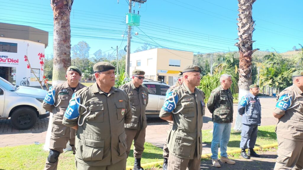 A solenidade teve início às 10h e se estendeu até às 11h, reunindo autoridades locais, membros da comunidade e os alunos da Escola Municipal Afonso Bedinot, que participaram ativamente da recepção com apresentações e homenagens à pátria.