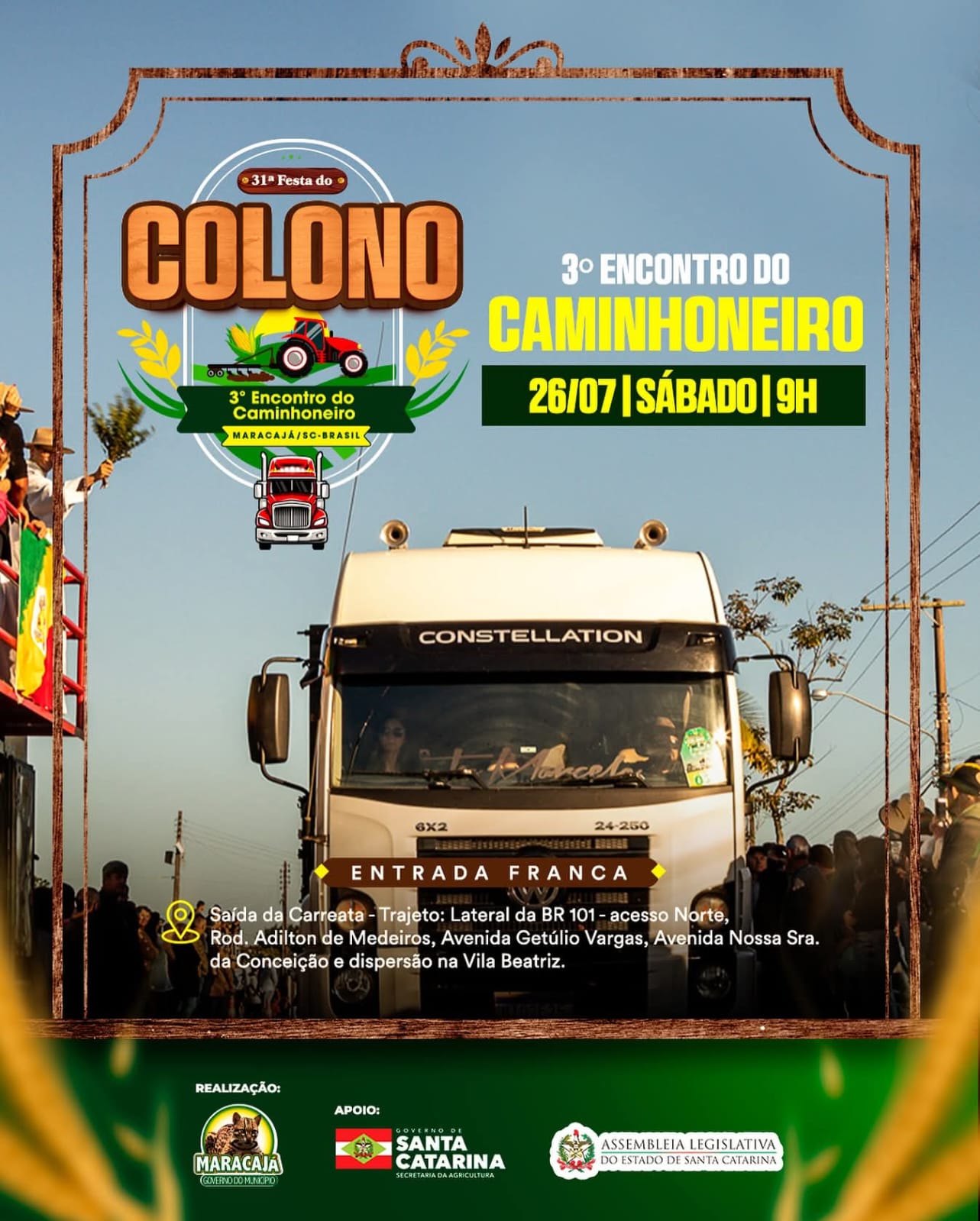 A Prefeitura de Maracajá expressa sua sincera gratidão a todos que contribuíram para o sucesso da 31ª Festa do Colono e do 3º Encontro do Caminhoneiro, realizados recentemente na cidade.…